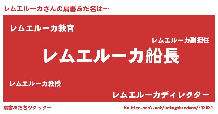 | ヘコむあだ名 | 『レムエルーカ(小並感)』『レムにー』 |