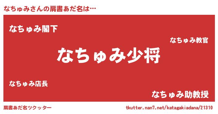 | 男性向けラノベタイトル風あだ名 | 『転生したらなちゅみだった件』 |