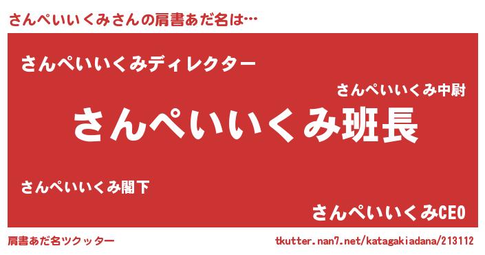 | 女子向けラノベタイトル風あだ名 | 『さんぺいいくみ様がみてる』 |