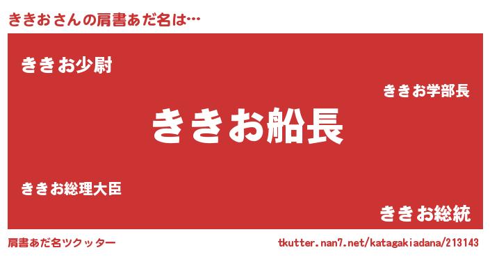 | ヒーロー風カッコイイあだ名 | 『最強戦士キキオ』『友情の使者ききお』 |