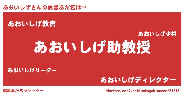 | 男性向けラノベタイトル風あだ名 | 『ノーゲーム・ノーアオイシゲ』 |