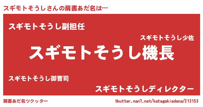 | 男性向けラノベタイトル風あだ名 | 『うちのスギモトそうしが世界を掌握している!』 |