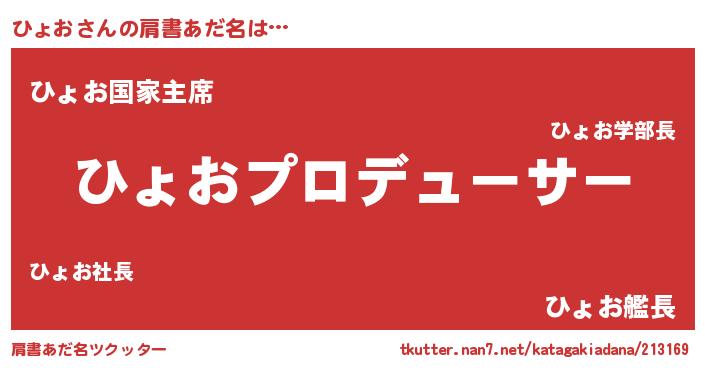 | 男性向けラノベタイトル風あだ名 | 『ひょおに滅ぼされるだけの簡単なお仕事です』 |
