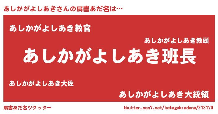 | ポケモン風あだ名 | 『ヒアシカガヨシアキ』『アーシイ』 |