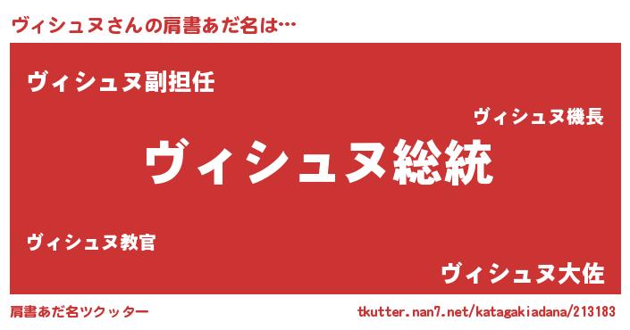 | 意味不明あだ名 | 『自称ヴィシュヌ』『永久保存ヴィシュヌ』 |