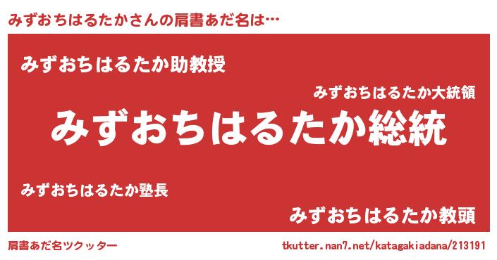 | 意味不明あだ名 | 『自称みずおちはるたか』 |