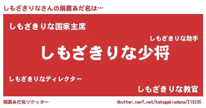 | 男性向けラノベタイトル風あだ名 | 『転生したらしもざきりなだった件』 |