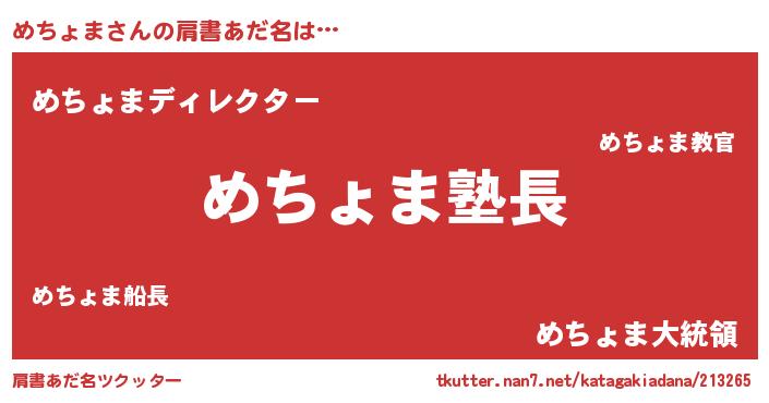 | 意味不明あだ名 | 『とにかく怪しいめちょま』 |