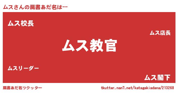 | ヒーロー風カッコイイあだ名 | 『仮面ムスダー』『ネオムス』 |