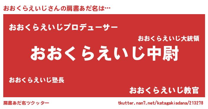 | 男性向けラノベタイトル風あだ名 | 『転生したらおおくらえいじだった件』 |