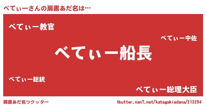 | ヒーロー風カッコイイあだ名 | 『仮面ベテダー』『ウルトラべてぃーマン』 |