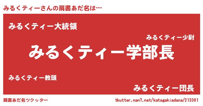 | 女子向けラノベタイトル風あだ名 | 『死神みるくティーの再婚』 |