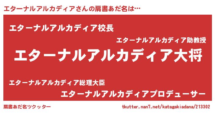 | 胡散臭い通販商品みたいなあだ名 | 『来世でも幸せになれる水素水…その名も「エターナルアルカディア」』 |