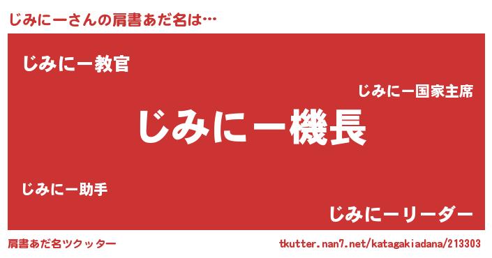 | 意味不明あだ名 | 『住所不定無職じみにー(79歳)』 |