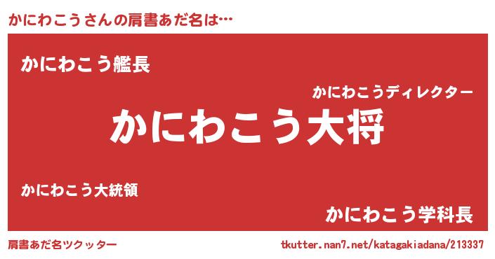 | 男性向けラノベタイトル風あだ名 | 『カニワコウスレイヤー』 |