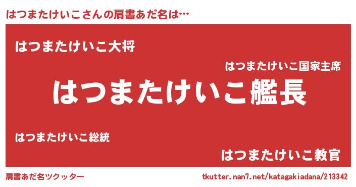 | ヒーロー風カッコイイあだ名 | 『仮面ハツダー』『ネオハツマタケイコ』 |