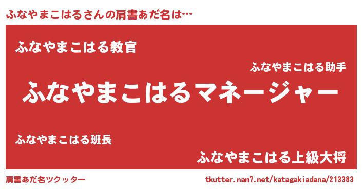 | 欧米人風あだ名 | 『アンジェラ・ふなやまこはる』 |