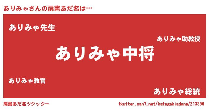 | 男性向けラノベタイトル風あだ名 | 『アリミャスレイヤー』 |