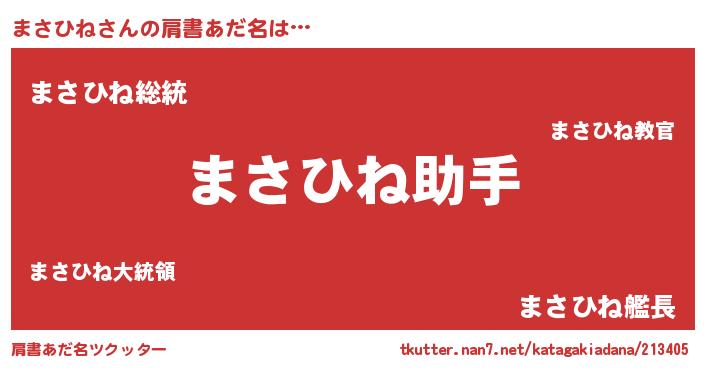 | ヘコむあだ名 | 『豆乳』『まさぷりん』『まさにゅー』 |