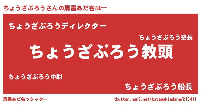 | ヘコむあだ名 | 『ちょうざぶろう(笑)』『ちょ太郎』 |