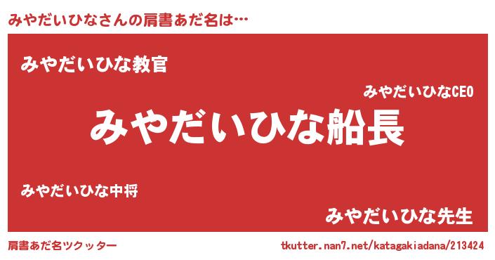 | 意味不明あだ名 | 『住所不定無職みやだいひな(10歳)』 |