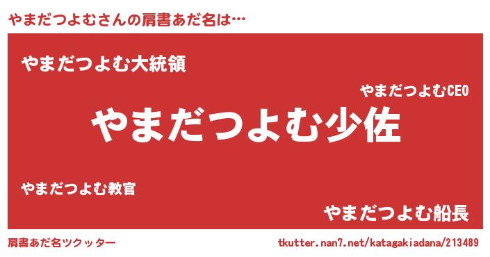 | 男性向けラノベタイトル風あだ名 | 『ヤマダツヨムスレイヤー』 |