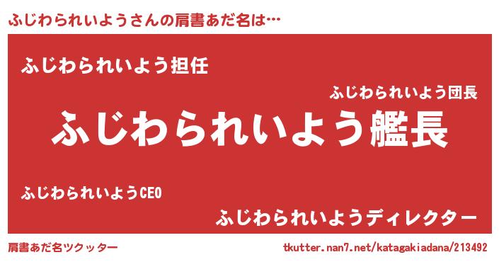 | 意味不明あだ名 | 『永久保存ふじわられいよう』 |