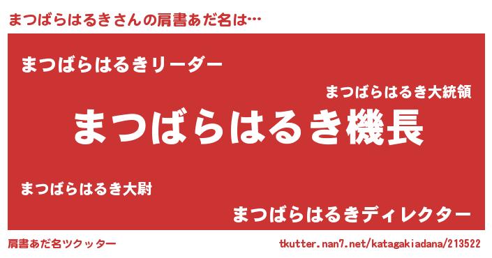 | 男性向けラノベタイトル風あだ名 | 『冴えないまつばらはるきの育てかた』 |