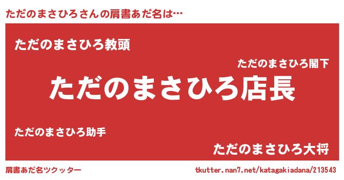 | ヘコむあだ名 | 『ただにゅー』『ただのまさひろ(笑)』 |