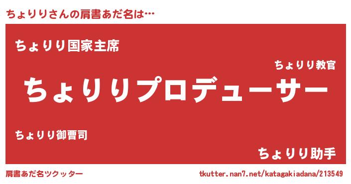 | 意味不明あだ名 | 『ちょりりフォーエバー』 |