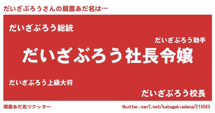 | ヘコむあだ名 | 『だいもー』『だいざぶろう(苦笑)』 |