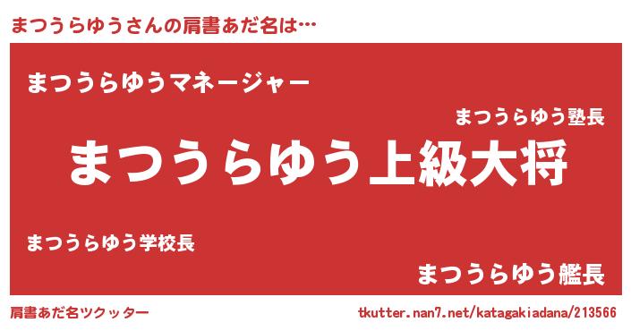 | ヒーロー風カッコイイあだ名 | 『幻影騎士マツ』『ネオマツウラユウ』 |