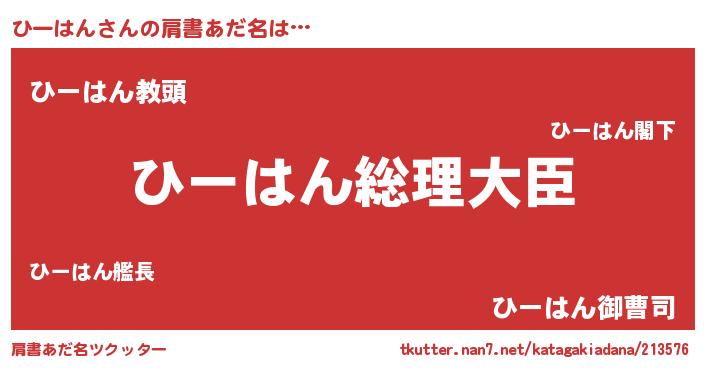 | 女子向けラノベタイトル風あだ名 | 『ひーはんの雑貨屋さん』『闇のひーはん』 |