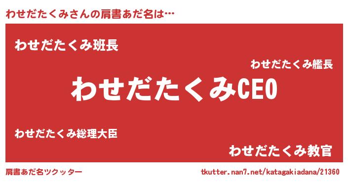 | 胡散臭い通販商品みたいなあだ名 | 『モテモテ間違いなしブレスレット…その名も「わせだたくみ」』 |