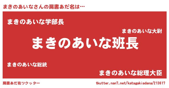 | 意味不明あだ名 | 『とにかく怪しいまきのあいな』 |