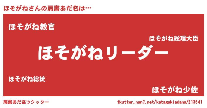 | ポケモン風あだ名 | 『ヒホソガネ』『ホーソイ』 |