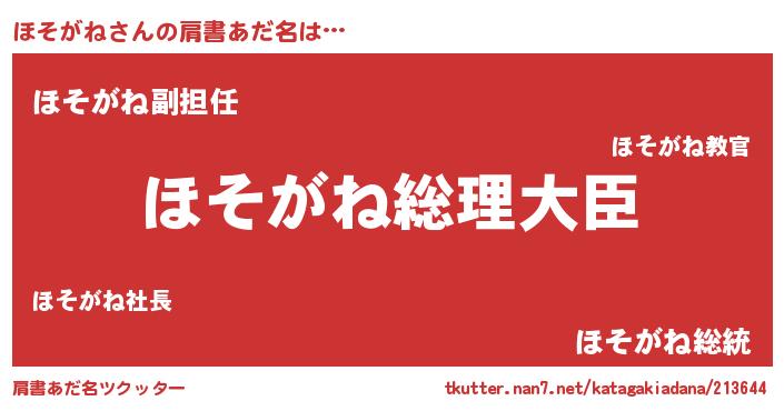 | 意味不明あだ名 | 『ほそがねフォーエバー』『自称ほそがね』 |