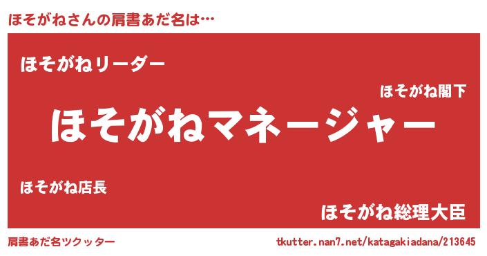 | ヘコむあだ名 | 『ほそお』『つくし』『ほそっふぃ~』 |
