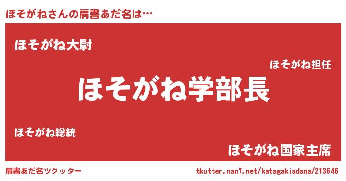 | 女子向けラノベタイトル風あだ名 | 『ほそがね恋絵巻』 |