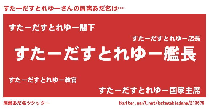 | 意味不明あだ名 | 『自称すたーだすとれゆー』 |