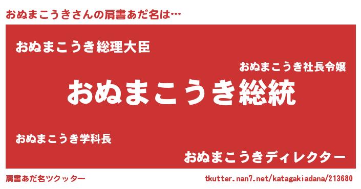 | 男性向けラノベタイトル風あだ名 | 『Re:おぬまこうきから始める異世界生活』 |