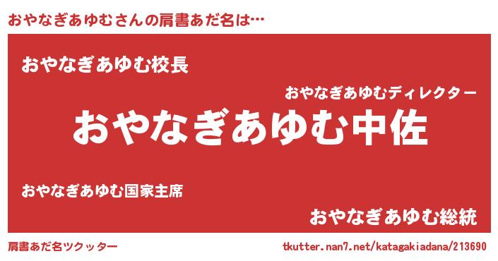 | ヒーロー風カッコイイあだ名 | 『ネオオヤナギアユム』『仮面オヤダー』 |