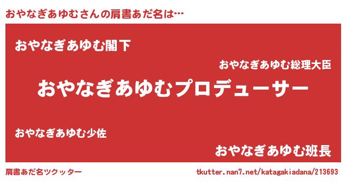 | 欧米人風あだ名 | 『アンジェラ・おやなぎあゆむ』 |