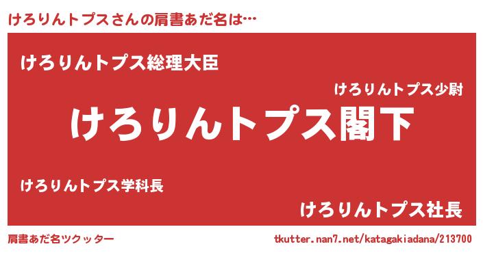 | 意味不明あだ名 | 『自称けろりんトプス』 |