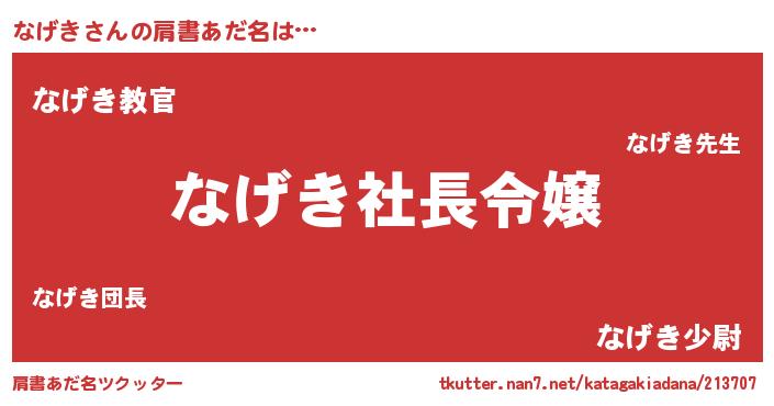 | ヒーロー風カッコイイあだ名 | 『スーパーナゲキ』『仮面ナゲダー』 |