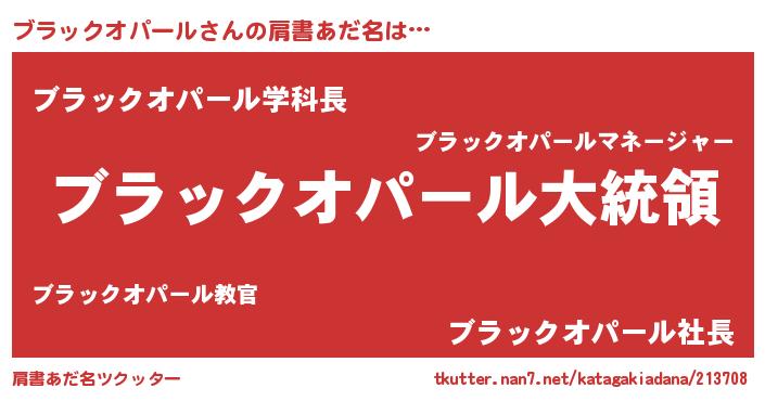 | 男性向けラノベタイトル風あだ名 | 『やはりブラックオパールの青春ラブコメはまちがっている 』 |