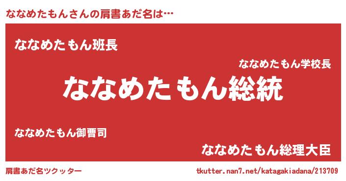 | 意味不明あだ名 | 『自称ななめたもん』 |