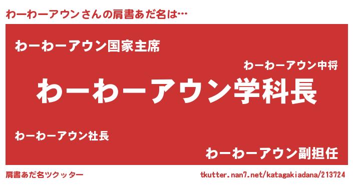 | 男性向けラノベタイトル風あだ名 | 『おまえをオタクにしてやるから、俺をわーわーアウンにしてくれ! 』 |