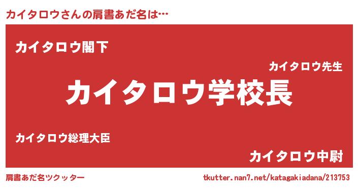 | ヒーロー風カッコイイあだ名 | 『慈愛の使者カイタロウ』『黄金騎士カイ』 |