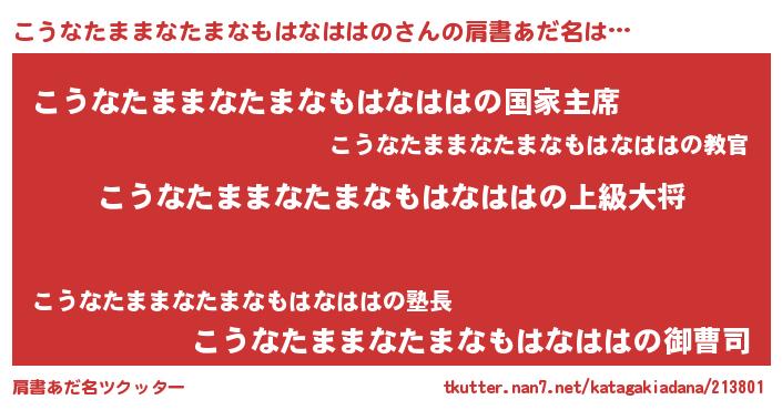 | 伝説のあだ名 | 『最強の陰陽師こうなたままなたまなもはなははの』 |